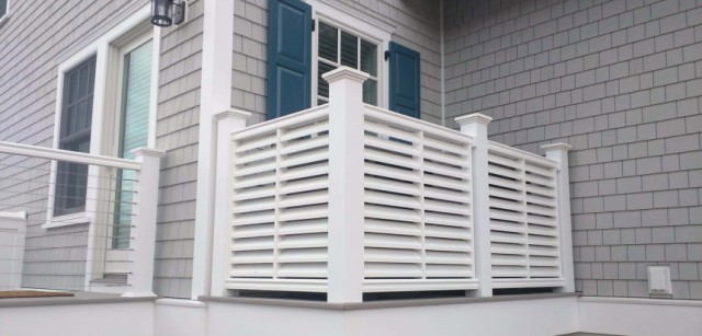 As the name suggests "Lantern Louver", this unique design is all about peace and quiet. Angled PVC slats make great noise insulators but allow enough air and light. Perfect for privacy of all types such as for discreetly covering utility areas, such as large A/C units, Pool equipment and outside changing and shower areas . Rich satin finish is durable, and resists scratches and dents. Just like all of our models, Privacy Louvers is lightweight; it does not require special tools for installation.